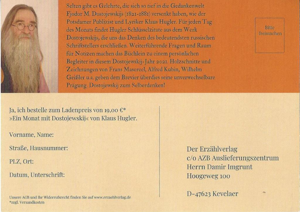 Nun hat sich der Potsdamer Literat Klaus Hugler 200 Jahre nach seiner Geburt DostojewskiJ angenommen.
