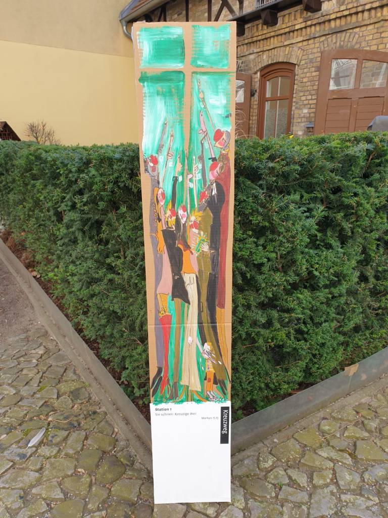 Den ganzen Tag lang ist der Kreuzweg zu sehen und jede*r ist eingeladen, im eigenen Tempo über die Passion Jesu zu meditieren und in Gedanken nachzugehen. Gestaltet wird der Kreuzweg von Studierenden des Wichern-Kollegs und Mitgliedern der Schwesternund Brüderschaft.