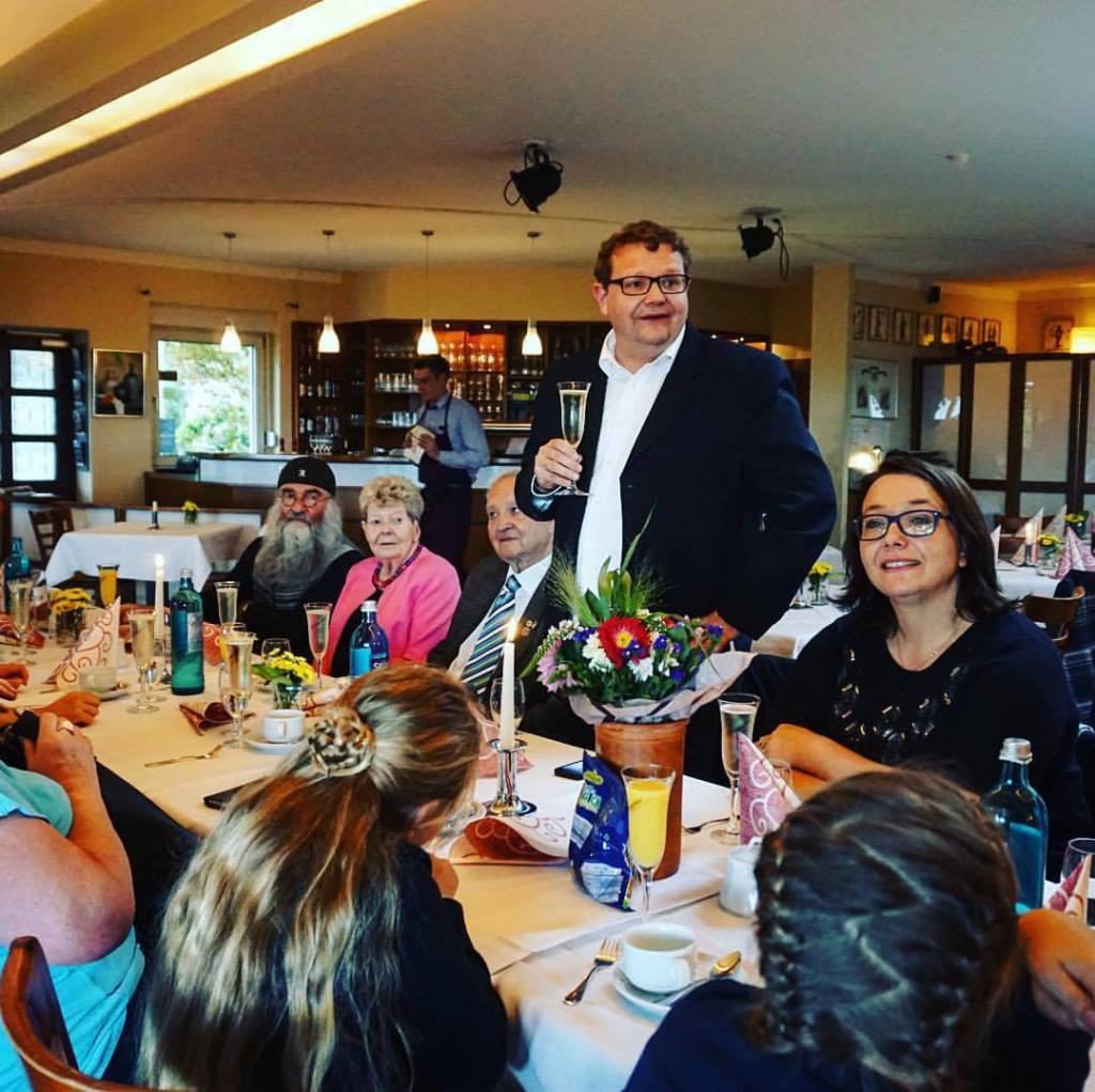 Zu einem der Jahresfeste für Kinder gehört der Geburtstag. Kinder bekommen Geschenke, Kinder dürfen sich etwas wünschen, Kinder feiern Partys und laden Freunde ein. Das tun auch die Erwachsenen. Oben eine Erinnerung an den 50. Geburtstag eures Religionslehrers, unten Fotos vom Geburtstag seines Vaters Heinz. Geburtstage werden generationenübergreifend gefeiert, hier im Schwetzinger Schlossgarten.