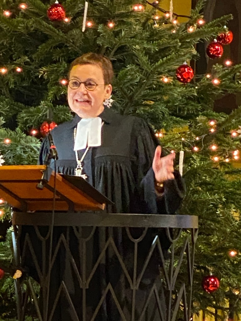 Berlin. Am 3. Sonntag nach Epiphanias, am 23. Januar 2022, besuchte Berlins Generalsuperintendentin Ulrike Trautwein die Spandauer Weihnachtskirche. Ihre Predigt war tagesaktuell und sehr persönlich. Die musikalische Umrahmung der Haselhorster Kantorei unter Leitung von Dr. Jürgen Trinkewitz begeisterte. Detlev Hesse vom Gemeindekirchenrat verübte den Lektorendienst.