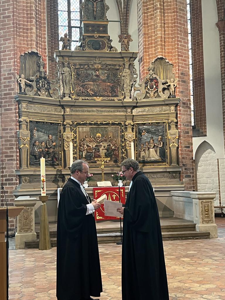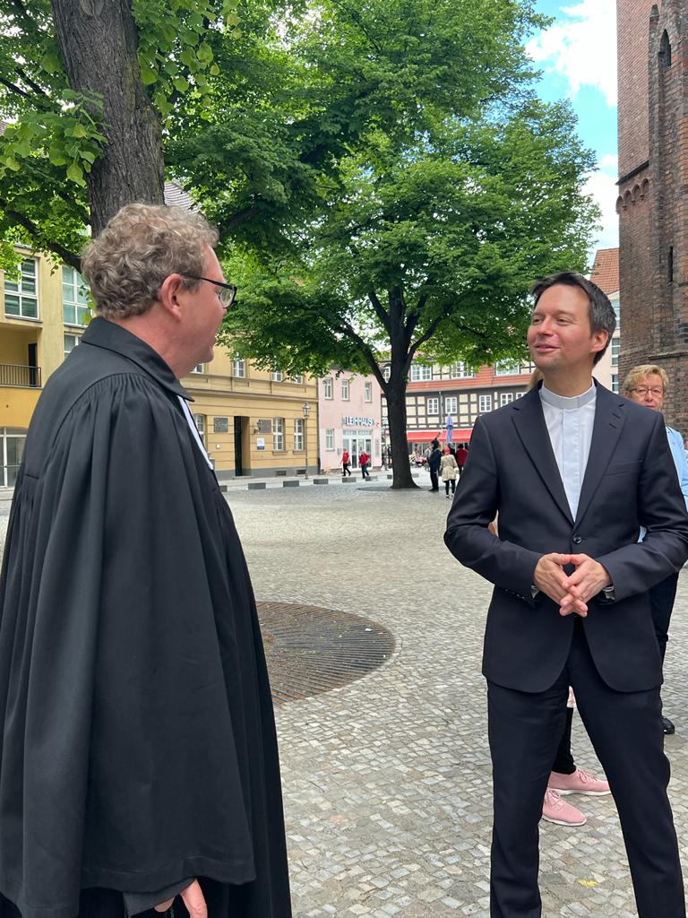 Berlin/Karlsruhe. Am 22. Mai gab es in der Spandauer Nikolaikirche eine besondere Premiere. Zum ersten Mal war mit Prälat Traugott Schächtele ein Vertreter der badischen Landeskirche bei einer Ordination unter dem Dach der Evangelischen Kirche Berlin-Brandenburg-schlesische Oberlausitz. Auch Abt Daniil Irbits vom Kloster St. Georg Götschendorf war bei der großen Feier mit dabei.