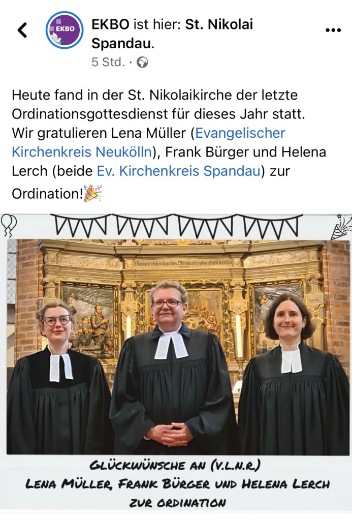 Beitrag zur Ordination auf dem Blog des Evangelischen Kirchenkreises Spandau