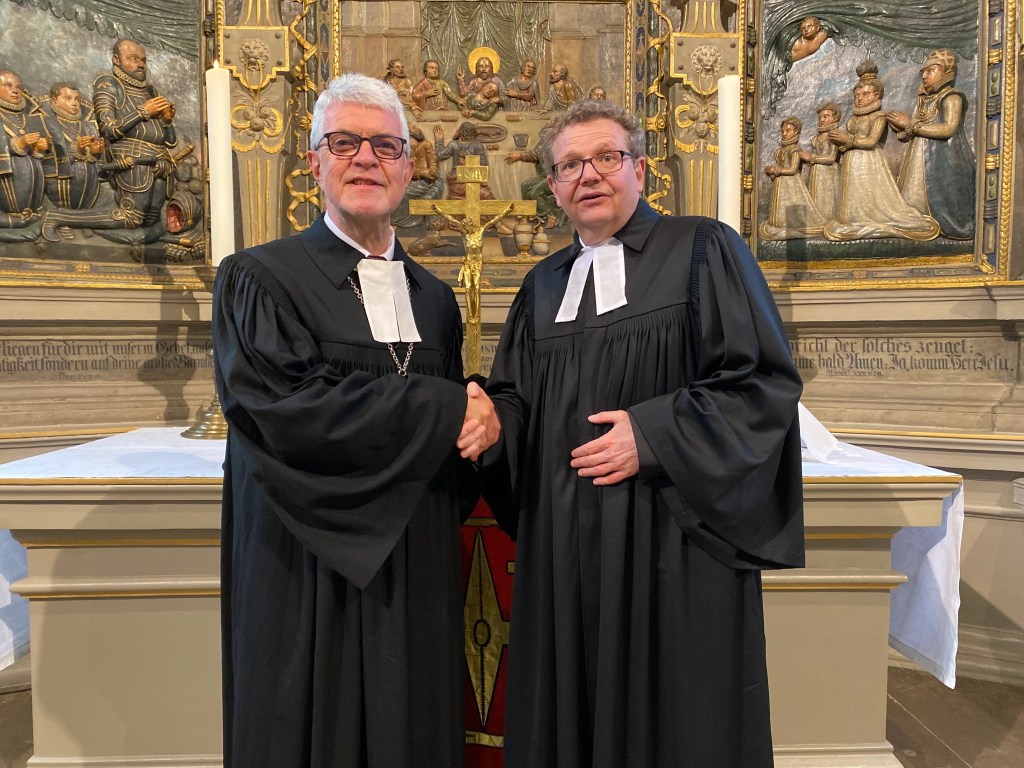 Am 22. Mai gab es in der Spandauer Nikolaikirche eine besondere Premiere. Zum ersten Mal war mit Prälat Traugott Schächtele ein Vertreter der badischen Landeskirche bei einer Ordination unter dem Dach der Evangelischen Kirche Berlin-Brandenburg-schlesische Oberlausitz. Auch Abt Daniil Irbits vom Kloster St. Georg Götschendorf war bei der großen Feier mit dabei.