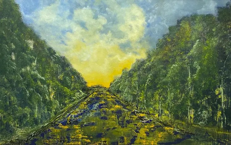 FLOWERS IN THE CANAL – 100x160cm – 39.3x63in – Acrylic on deep canvas by Holger Baehr – 2022
