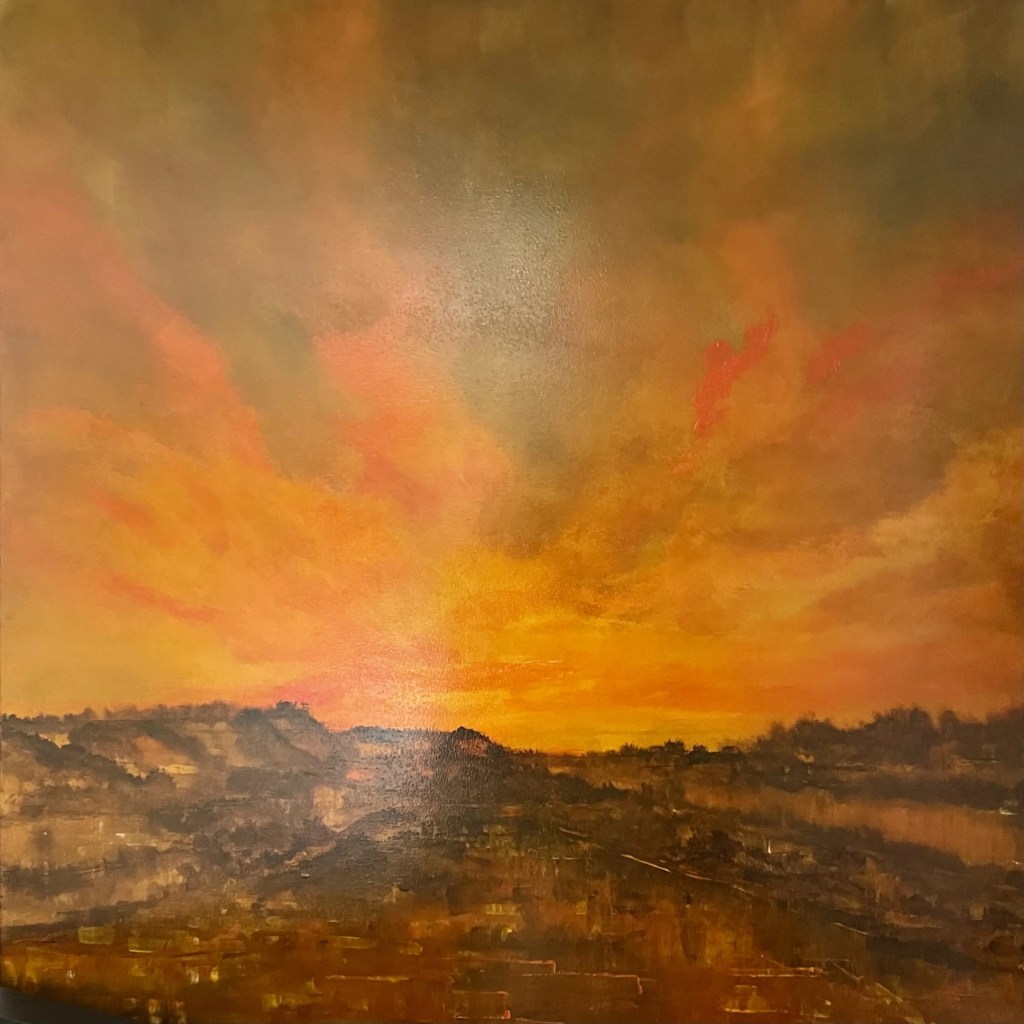 ORANGE GLOW – 150x150cm – 59x59in – Acrylic on deep canvas by Holger Baehr – 2021