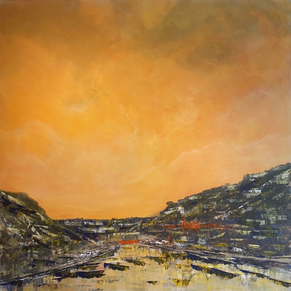 HEIDELBERG UPRIVER – 200x200cm – 78.7×78.7in – Acrylic on deep canvas by Holger Baehr – 2021