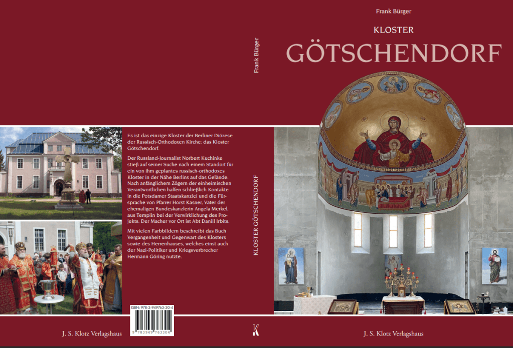 Das Kloster Götschendorf ist das einzige Kloster der Berliner Diözese der russisch-orthodoxen Kirche. Der Russland-Journalist Norbert Kuchinke stieß auf seiner Suche nach einem Standort für ein von ihm geplantes russisch-orthodoxes Kloster in der Nähe Berlins auf das Gelände. Nach anfänglichem Zögern der einheimischen Verantwortlichen halfen schließlich Kontakte in die Potsdamer Staatskanzlei und die Fürsprache von Pfarrer Horst Kasner, Vater der ehemaligen Bundeskanzlerin Angela Merkel, aus Templin bei der Verwirklichung des Projekts. Der Macher vor Ort ist Abt Daniil Irbits. Mit vielen Farbbildern beschreibt das Buch Vergangenheit und Gegenwart des Klosters sowie des Herrenhauses.
