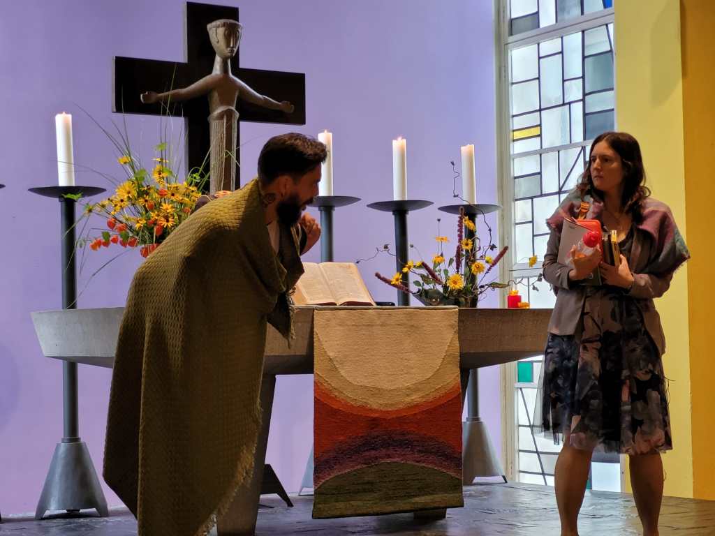 Das Gemeindefest der Evangelischen Weihnachtsgemeinde in Spandau am 3. September 2023 gab es internationale Noten. Schon der Gottesdienst zur Eröffnung zeigte: Die Gemeinde ist auf dem Weg. Der Gottesdienst zum Schulanfang wurde geleitet von Pfarrer Oskar Hoffmann. Pfarrerin Helena Lerch und Diakon Mathias machten Kindern und Erwachsenen deutlich: Wir sind auf dem Weg. Sie gingen dabei in ihrer Zeitenwanderung zurück in das Alte Testament und fokussierten die biblische Gestalt „Abraham“. Dabei spielten Steine als Symbol für Ängste, die ja alle haben, eine große Rolle.
