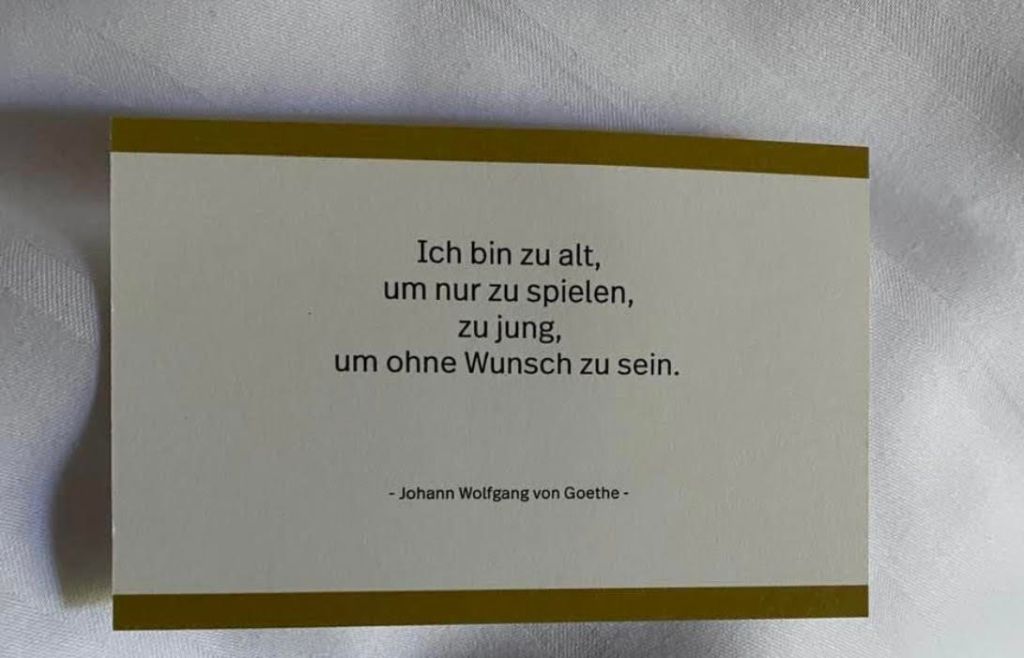 Gestern Abend fand ich im Hotel auf meiner Bettdecke dieses Kärtchen vor. Es ist wohl an den Richtigen gelangt…