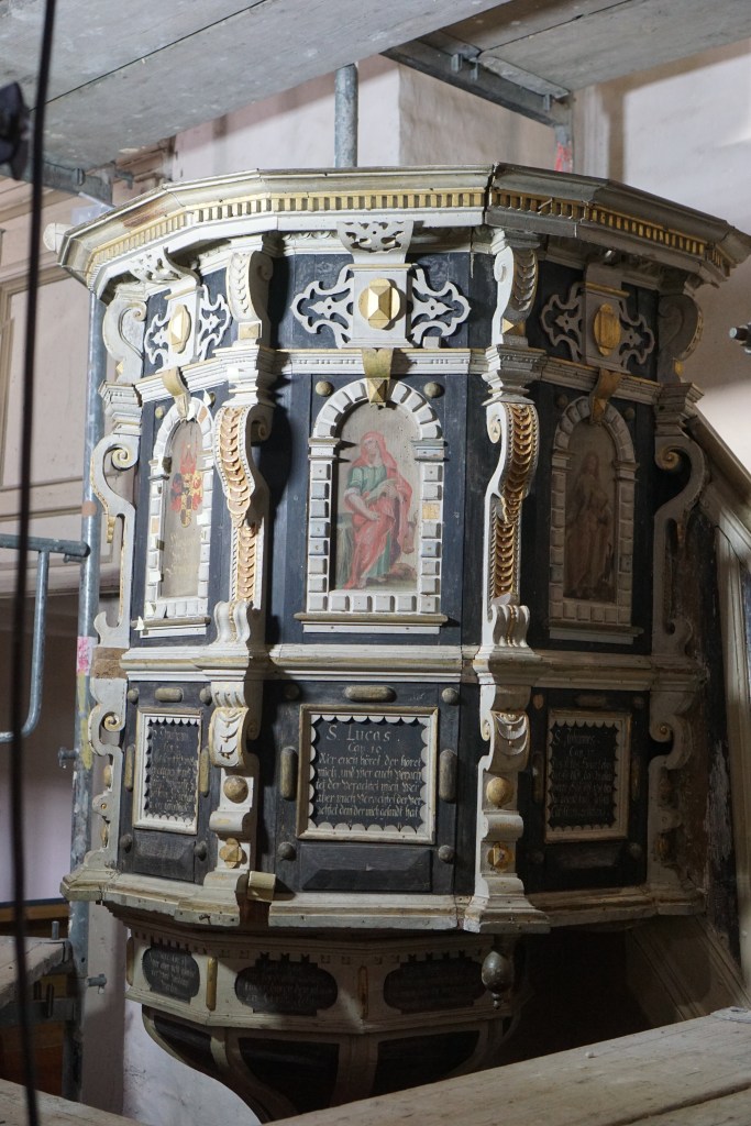 Die Kanzel befindet sich auf der Nordseite am westlichen Ende des Chores. Die hölzerne Kanzel mit Schalldeckel wurde von Margareta von der Schulenburg, wie die große Glocke wohl auch 1620, gestiftet. Auf dem polygonalen, mit Diamantbeschlägen und anderen ornamentalen Verzierungen geschmückten Kanzelkorb sind in Arkadenrahmen die vier Evangelisten dargestellt.