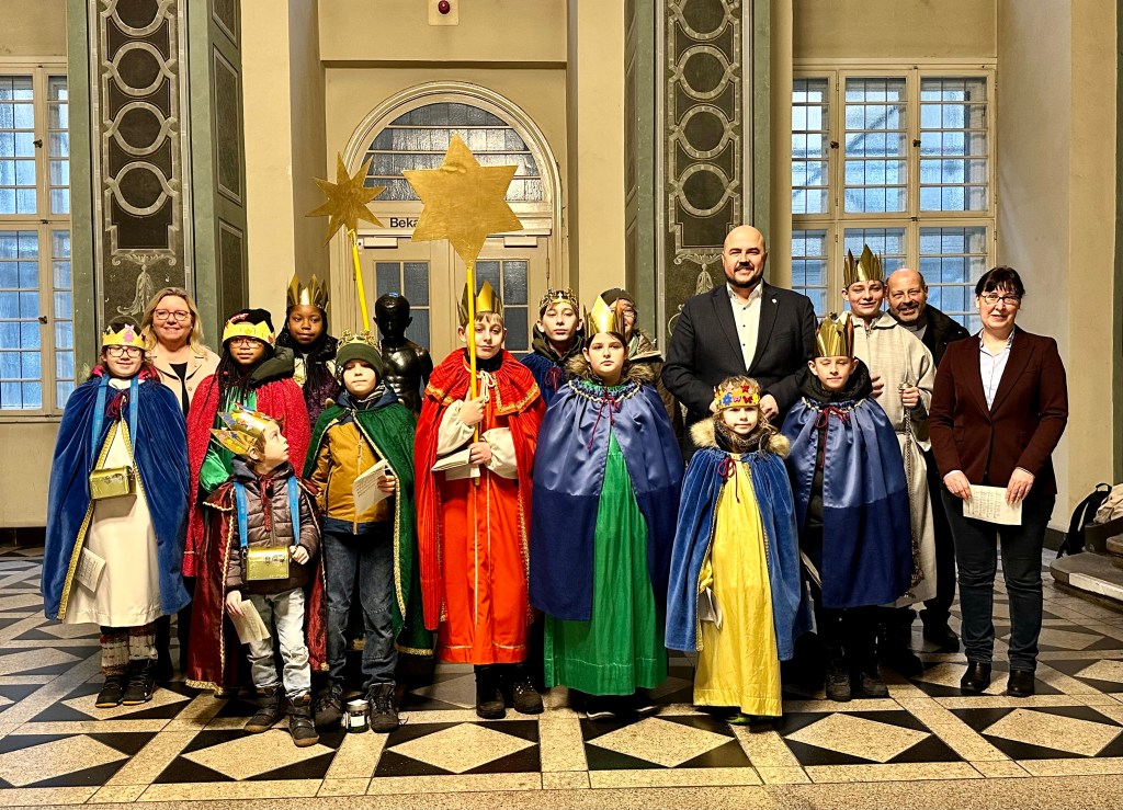 Der Empfang der Sternsinger ist mittlerweile schon eine Tradition im Bezirksamt. Mit traditionellen Liedern und dem Kreidezeichen „20*C+M+B+24“ brachten sie