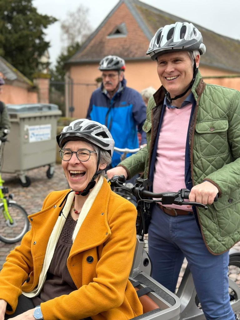 „Ich freue mich, dass ich heute gemeinsam mit der Staatssekretärin im Ministerium für Verkehr Baden-Württemberg Elke Zimmer zu einem sehr schönen Termin der Stadt Schwetzingen.de eingeladen war. Sie hat das große Förderpaket der Initiative RadKULTUR an die Stadt Schwetzingen übergeben sowie das grandiose Lastenrad „Schwetzinger Spargelschees“ eingeweiht“, sagt Baumann auf seinem Facebook-Kanal.