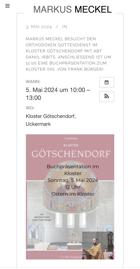Berlin. Heute erinnern sich die orthodoxen Schwestern und Bruder an den Tod Jesu. Heute liegen die ersten 50 Exemplare der überarbeiteten Zweitauflage des Buches zum „Kloster Götschendorf“ auf dem Tisch. Ostern kann kommen.