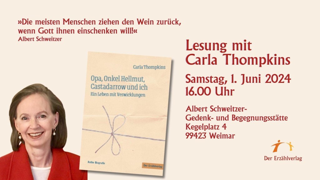 „Das Vaterhaus Schweitzers in Kaysersberg, das rund 120 Kilometer von Lunéville entfernt liegt, ist ein Museum, ich habe es mehrmals besucht mit meiner Freundin aus Neuss, deren Vater ein Jude aus Mulhouse mit Schweitzer befreundet war und Geld gespendet hatte um ihm für sein Unternehmen in Lambaréné zu helfen. Meine Freundin Yvette Winter geborene Cywie hat ihren Vater jedesmal nach Kaysersberg begleitet und so hat sie ihn natürlich auch kennengelernt. Schweitzer kam ab und zu in sein Heimatstädtchen zurück um Sponsoren zu suchen… Yvette war damals noch ein sehr junges Mädchen. Ich denke, dass es so um 1954 bis 1960 geschehen war.“