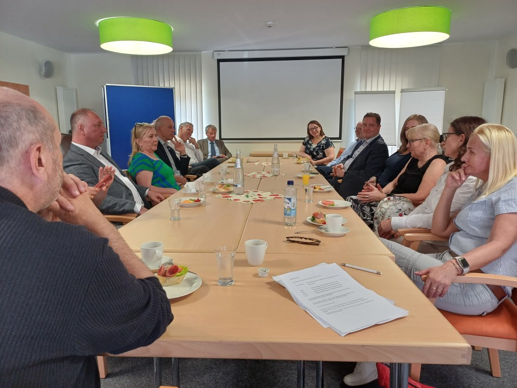 Nach den offiziellen Grußworten fand ein Austausch über die Partnerschaften und gemeinsame Projekte statt, in dem sowohl über die Chancen und Herausforderungen der deutsch-polnischen Zusammenarbeit als auch über die Solidarität und den Zusammenhalt im gemeinsamen Europa gesprochen wurde. Alle Beteiligten stimmten darin überein, dass die deutsch-polnische Zusammenarbeit ein herausragendes Beispiel für die Überwindung alter Konflikte und aktueller Vorurteile und den Aufbau stabiler, freundschaftlicher Beziehungen ist. Durch gemeinsame Projekte und Initiativen profitieren beide Länder wirtschaftlich, kulturell und sozial voneinander. Diese Partnerschaft stärkt nicht nur die Region, sondern trägt auch zur Stabilität und Einheit Europas bei. Besonders in Grenzregionen wie der Oderregion zeigt sich, wie grenzüberschreitende Zusammenarbeit den Alltag der Menschen positiv beeinflussen kann. Dies soll auch in den anstehenden Projekten, unter anderem gemeinsam mit der Gemeinde Banie, umgesetzt werden.