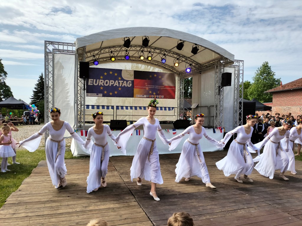 Die Bilanz: Rund 600 Kinder und Jugendliche aus den Landkreisen Barnim und Uckermark sowie aus der Woiwodschaft Westpommern feierten und spielten gemeinsam. Das Motto des diesjährigen Europatages lautete: „Wir wählen Europa – 25 Jahre deutsch-polnische Projekte im EJF“. EJF-Vorstand Dr. Andreas Eckhoff begrüßte die Gäste. Darunter waren Jörg Matthes, Amtsdirektor des Amtes Britz-Chorin-Oderberg, Hardy Lux, Landtag Brandenburg, jugendpolitischer Sprecher der SPD, Marko Buchta, Ministerium der Finanzen und für Europa des Landes Brandenburg, Koordinator des Programms Interreg VIA, Beata Biaduń-Broda, stellvertretende Bürgermeisterin von Debno und Klaus Marschner, Bürgermeister von Liepe. Dr. Eckhoff erinnerte daran, dass sich das EJF seit 25 Jahren für die deutsch-polnische Verständigung und das aktive Miteinander in der Grenzregion einsetzt. Gemeinsam mit den polnischen Partnern wurden über 250 deutsch-polnische Begegnungen, Fachseminare und Feste organisiert sowie grenzübergreifende Interreg-Maßnahmen realisiert. In allen Grußworten wurde ausdrücklich darauf hingewiesen, dass Polen und Deutsche einen sehr wichtigen Beitrag zur europäischen Gemeinschaft leisten und dazu aufgerufen, das Privileg und die Verpflichtung wahrzunehmen und an den Europawahlen am 9. Juni teilzunehmen.