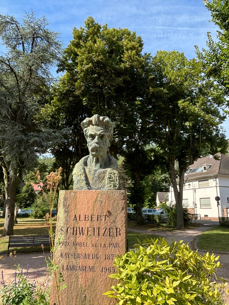 Albert Schweitzer, der 1875 in Kaysersberg geboren wurde, ist eine Symbolfigur des Humanismus. Als Arzt, Theologe, Musiker und Philosoph widmete er sein Leben der humanitären Hilfe und der Förderung des Friedens. Er erhielt 1952 den Friedensnobelpreis und ist vor allem für seine medizinische Arbeit in Afrika bekannt, wo er ein Krankenhaus in Lambaréné, Gabun, gründete. Sein Engagement für Freiheit, Toleranz und gegenseitigen Respekt inspiriert weiterhin Generationen auf der ganzen Welt.“