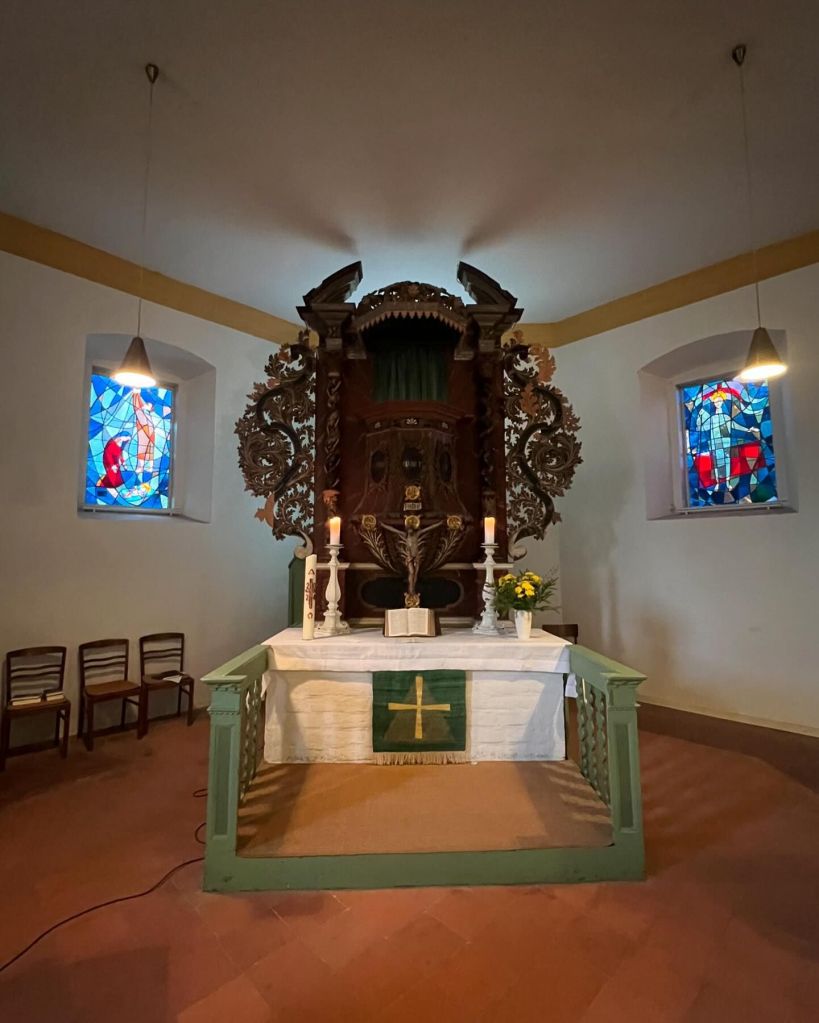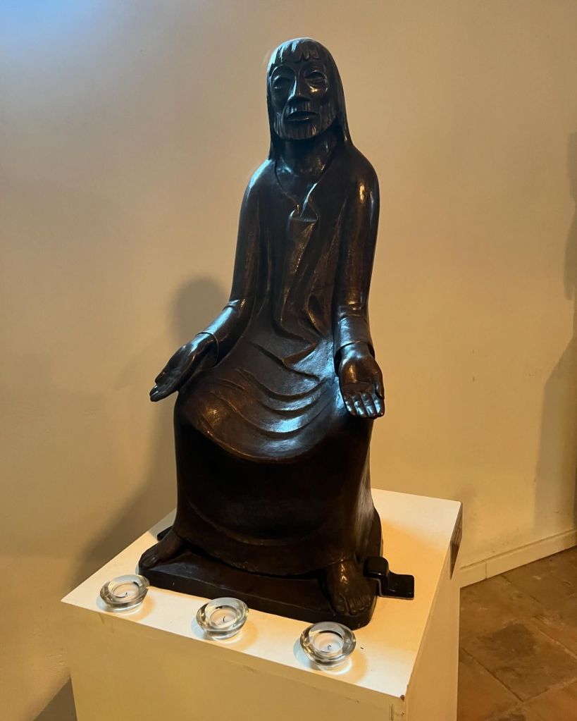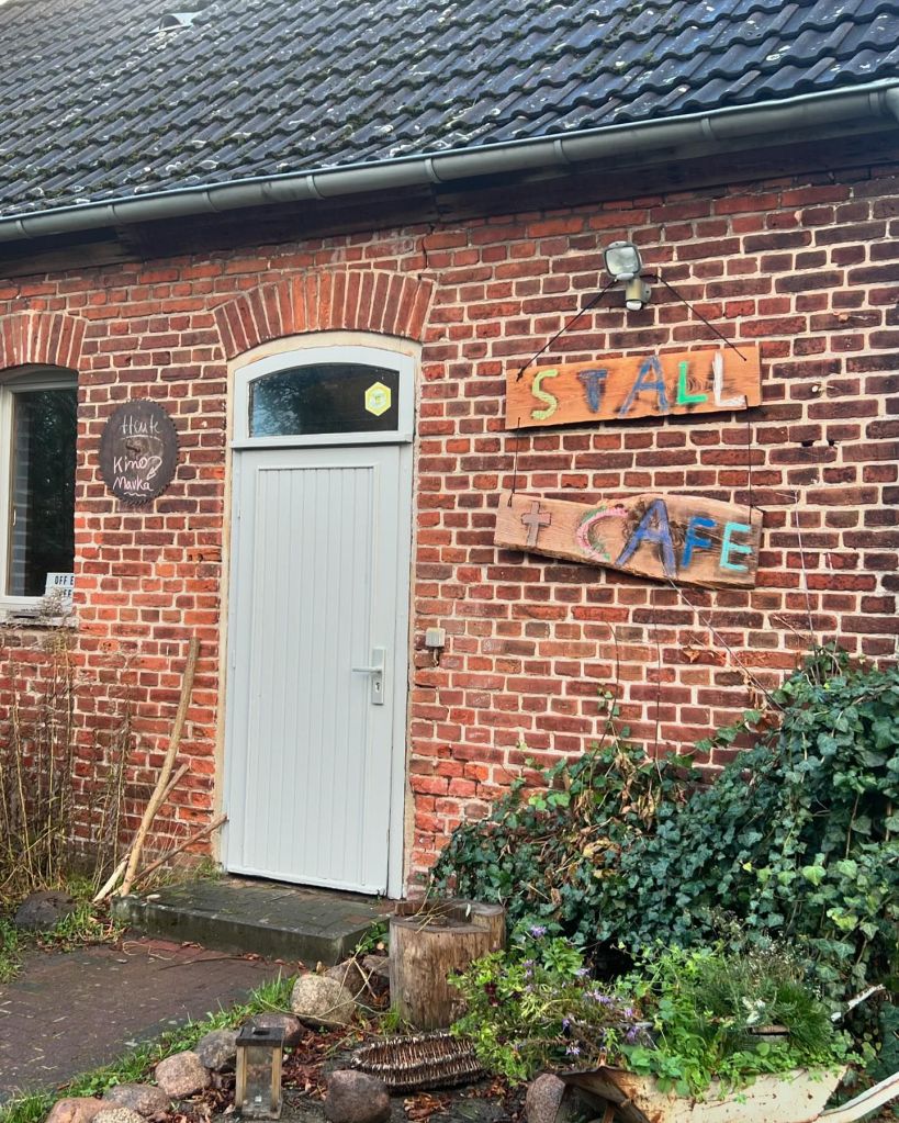 Entdeckungen am Wegesrand: das Kleinod Wandlitz, mit einem echten Barlach und farbenfrohen Fenstern, einem dritten Ort, dem Stall-Café für Begegnungen von Senior:innen und Hilfsangeboten am alten Pfarrhaus, das auch die Pfadfinder nutzen.