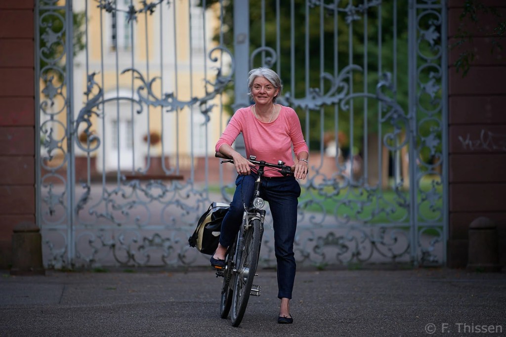 »Ich bin leidenschaftliche Radfahrerin und fahre täglich bei jedem Wetter mit großer Freude nach Karlsruhe, wo ich arbeite. Ich genieße den Weg und die Jahreszeiten. Es sind täglich 14 km dorthin: der Weg führt mich durch das Moor, über Wiesen und Felder, auf den Strahlen durch den Hardtwald Richtung Schloß. Ein besonders schöner Moment, den ich besonders liebe, ist die Lärchenallee von der Grabkapelle Richtung Schlossturm. Ich fühle mich gerade in dieser Endstrecke wunderbar lebendig, kräftig und mit viel Energie aufgeladen, ein Zustand, der mich total glücklich macht und den ich in vollen Zügen genieße und der mich fit hält. Das ist für mich Karlsruhe, jeden Tag.« Galina Uhlmann-Valovic