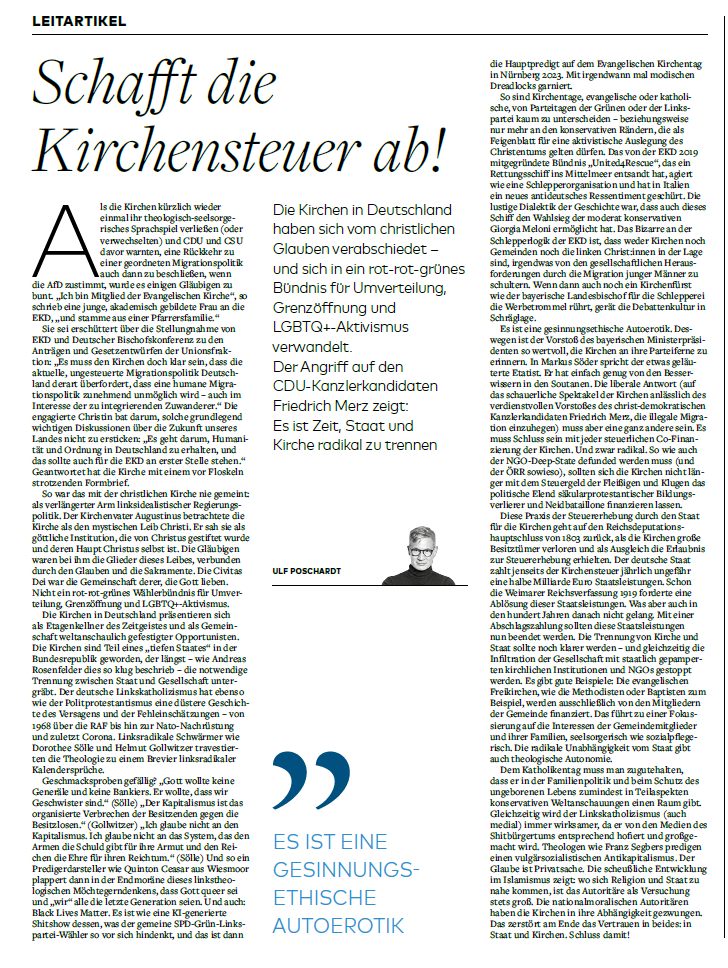 Vor einiger Zeit hat Hans Joas einmal gesagt: Gegenwärtig werden die Karten neu gemischt, was die Religion betrifft. Er hat das in einem anderen Kontext gesagt – aber es trifft auch die Gegenwart. Ja – seltsame Koalitionen bahnen sich da an. Das sollten sich aber auch die Kolleg*innen merken, die auch immer wieder sagen, DIE Kirche segle im Fahrwasser Rot-Grün und habe Gott vergessen. Sie dürfen das schon sagen, aber sich vielleicht überlegen, welche Geister man da ruft bzw. in welche Geselligkeit man sich da begibt.