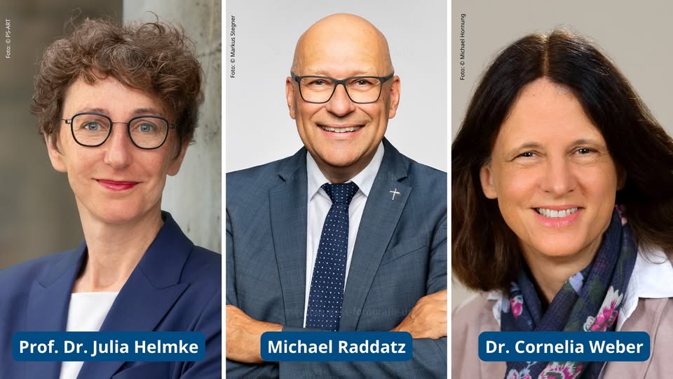 Die Wahl für das Amt der Generalsuperintendentin bzw. des Generalsuperintendenten im Sprengel Berlin der EKBO rückt näher! Die Wahlkommission hat Julia Helmke, Michael Raddatz und Cornelia Weber als Kandidatin vorgeschlagen.