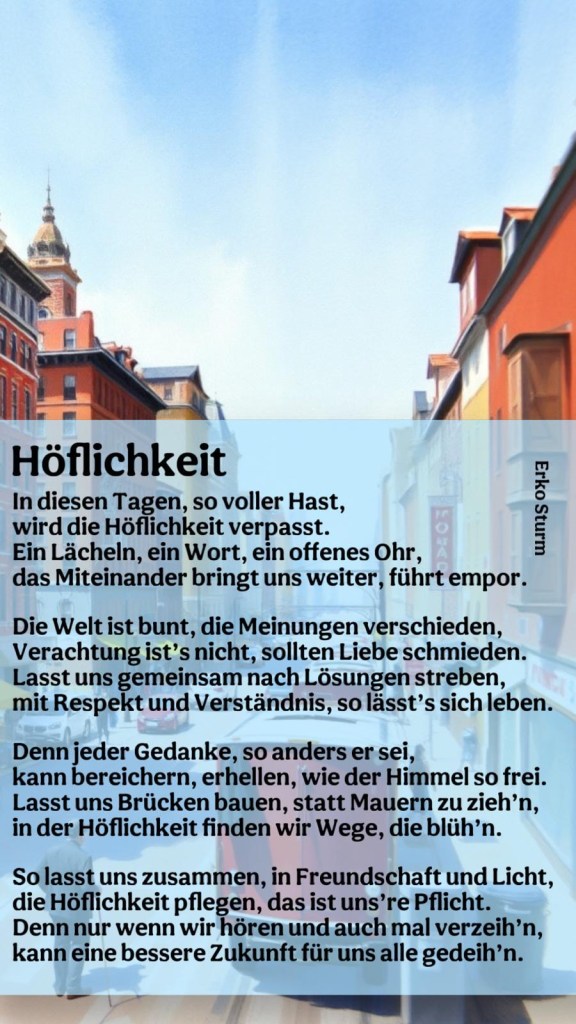 Dabei hab‘ ich gar nicht an meine allgemeine Wunschliste gedacht. Denn da könnte ich mich wahrscheinlich mit vielen Menschen schnell einig werden: Einigermaßen gesund durchs Leben kommen. Bewahrung vor Katastrophen. Frieden – nicht nur bei uns. Ein anderer politischer Umgangston. Gerade jetzt im Wahlkampf. Mehr Miteinander als Gegeneinander. Es gibt noch einiges, was mir da spontan einfällt.