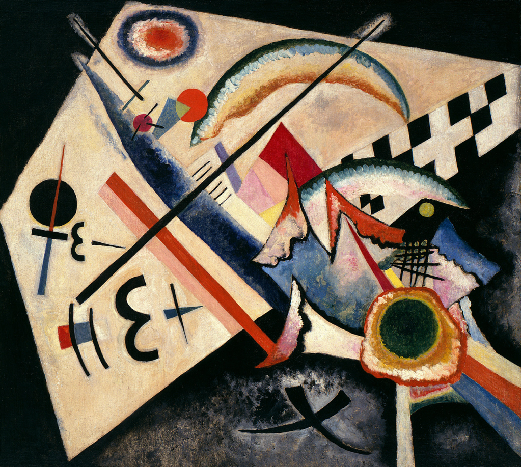 Wassily Kandinsky, geboren in Moskau und zunächst zum Juristen ausgebildet, studierte ab 1896 in München Kunst. Ab 1908 präsentierte er erste, dem Expressionismus zuzuordnende Werke, die sich durch kräftige Farben und vereinfachte Formen auszeichnen. Es folgte die Gründung der Künstlervereinigung Der Blaue Reiter und die immer stärkere Abkehr von der reinen Wiedergabe sichtbarer Realität. 1911 veröffentlichte er das richtungsweisende theoretische Werk Über das Geistige in der Kunst, das bis in die 1970er Jahre die Kunstwelt beeinflussen sollte. Mit Bezug auf Musik, Tanz, Physik und Biologie nahm Kandinsky darin Impulse der Neurowissenschaften auf und verknüpfte sie mit spirituellen Vorstellungen wie der Theosophie, die Kandinskys Schaffen stark beeinflusste. Sein Ziel war der Beweis, dass Farben und geometrischen Flächen universelle Eigenschaften innewohnen, die in einem Wechselverhältnis stehen.