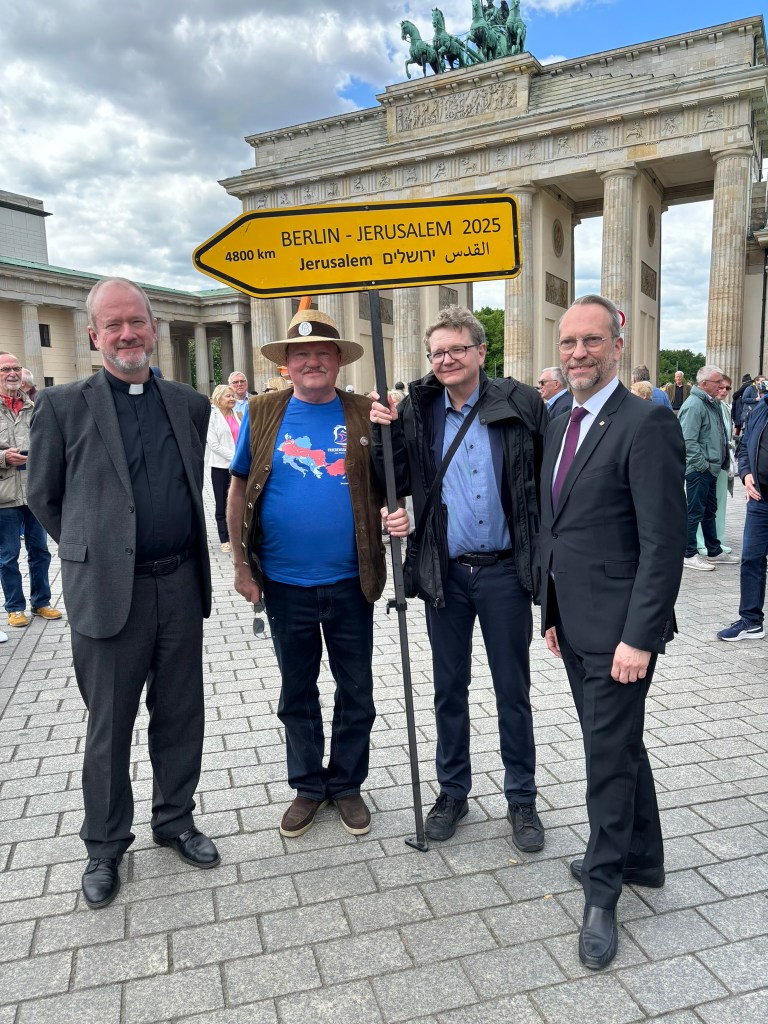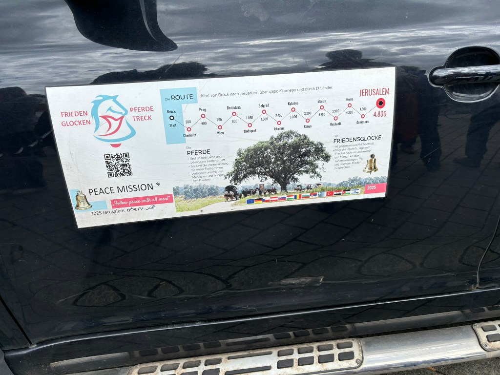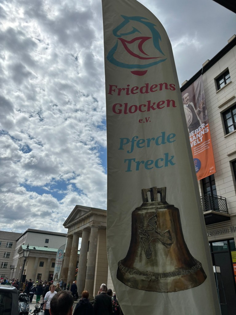 „Auftaktveranstaltung für den #Friedensglockentreck von Berlin nach Jerusalem am Brandenburger Tor von Berlin. Dreißig Mutige starten heute mit zwanzig Pferden, von vielen Interessierten umringt, mit Ihrem Treck in Richtung Heiliger Stadt. Auf einer Pressekonferenz mit Schirmherr Generalsuperintendent Kristóf Bálint, dem Initiator Pfarrer Helmut Kautz, Bäcker Karl-Dietmar Plentz und zwei Treckteilnehmern wurde die Route und manches Detail der Unternehmung bedacht. Viele Fragen kamen von den vielen Anwesenden im Restaurant mama. Danach hielten Bundestagsvizepräsident Bodo Ramelow, Staatssekretärin Gitta Connemann und Anan Zen von der israelischen Botschaft Grußworte für den Treck, der dann unter großer Anteilnahme der Beteiligten vor dem Brandenburger Tor eintraf. Draußen wurde der Treck begrüßt, Reden gehalten, gesungen, getanzt (mit Schülern der Schule #Talitha Kumi, die in Trägerschaft des #BerlinerMissionswerks ist) und gelacht, riesige Brote miteinander geteilt, Gemeinschaft gehalten und einer Rede des Generalsuperintendenten gelauscht, ehe dieser den Treck und seine Mitstreiter und alle Anwesenden unter den Segen G’TTes stellte. Wer sehen möchte, ob der Friedensglockentreck gut vorankommt, der kann sich täglich auf der Seite https://friedenstreck.de/friedenstreck-2025/ kundig machen. Auch Spenden werden noch benötigt und sind willkommen.“