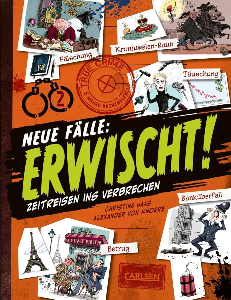 Den Eiffelturm verkaufen? Was für eine Idee! Wer steckte dahinter und wie wurde der Täter erwischt? Auch im zweiten Band der Erwischt–Reihe können Hobbydetektiv*innen wieder hautnah miterleben, wie fünf spannende und aufsehenerregende Kriminalfälle der Geschichte gelöst wurden. Dabei schauen sie Polizei und Kripo bei ihren Ermittlungen über die Schulter und erhalten spannende Einblicke in die Kriminal- und Polizeigeschichte.