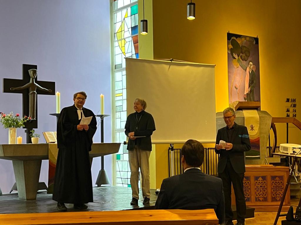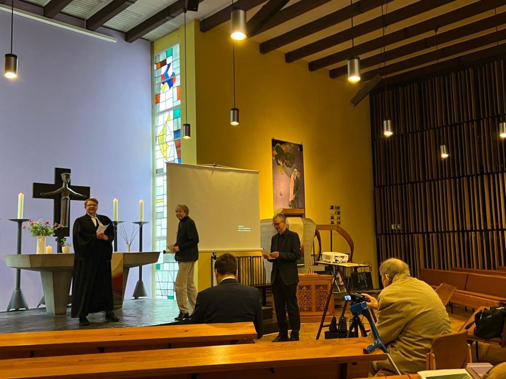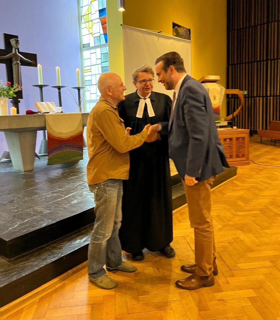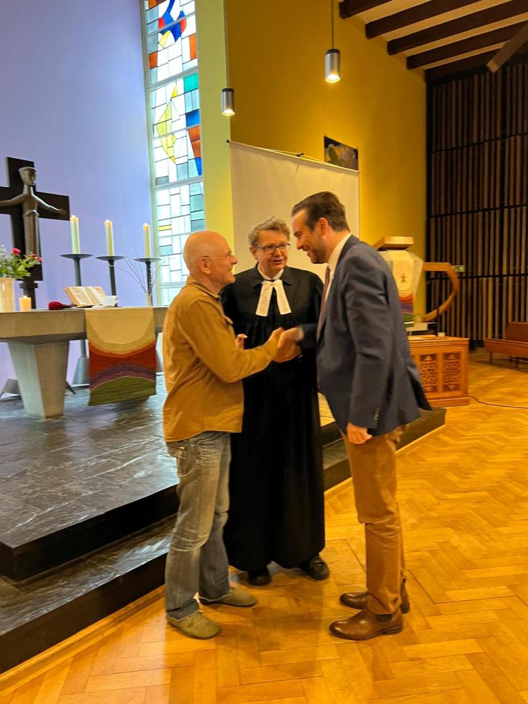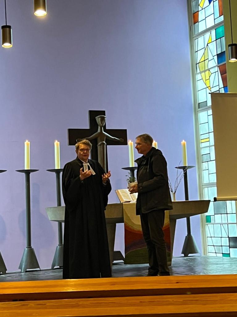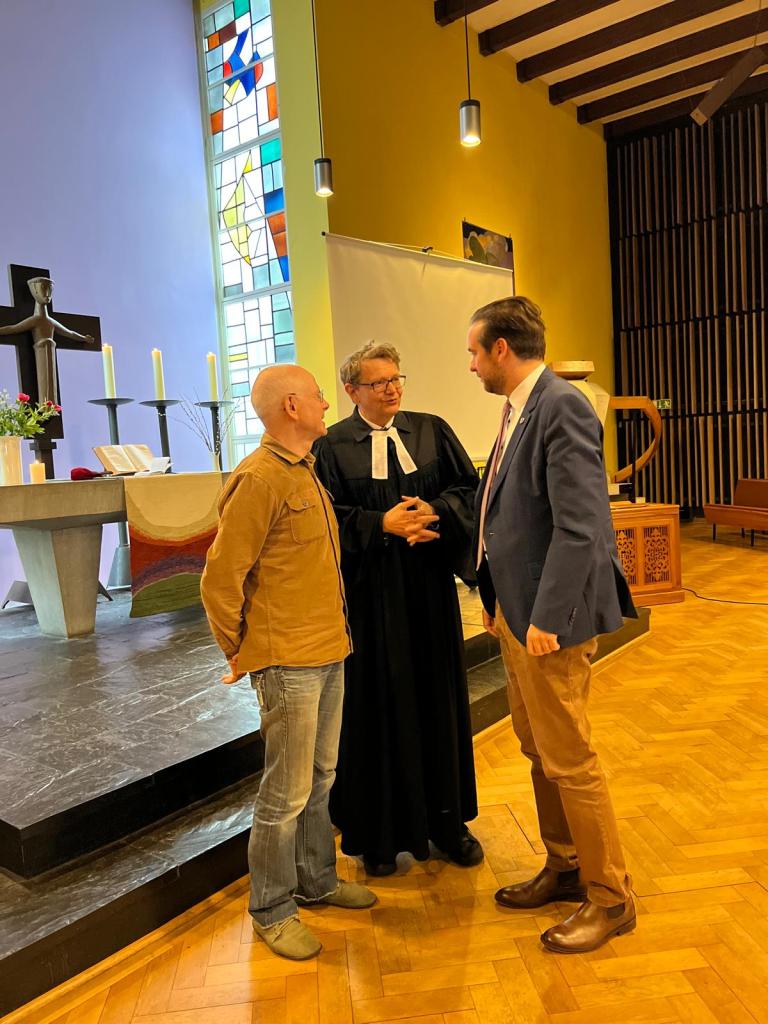 Nach dem Gottesdienst gab es in im Gemeinderaum eine Podiumsdiskussion zum Thema Europa. Beteiligt waren der Landtagsabgeordnete und Autor Andreas Sturm sowie der ehemalige stellv. Integrationsbeauftragte des Landkreises Uckermark, Lothar Priewe.