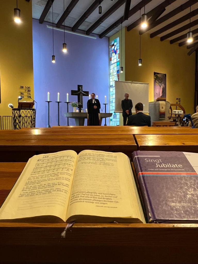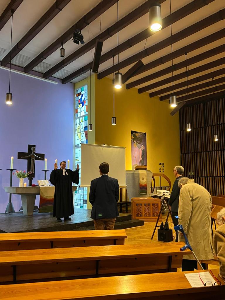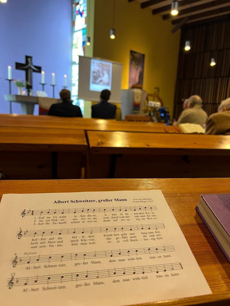 Sonntag Rogate, das bedeutet Gottesdienst in der evangelischen Weihnachtskirchengemeinde. Bereits hier gab es Premieren. So wurde zum ersten Mal das Lied „Albert Schweitzer, großer Mann“ vorgetragen und gesungen. Musikalisch umrahmte Organistin Barbara Herrberg den Gottesdienst. Die Predigt fokussierte den vorgegebenen Text zum Thema Beten. Zudem gab es Bezüge zum Lied und auch die Beschäftigung der Gemeinde mit dem Thema „Albert Schweitzer“