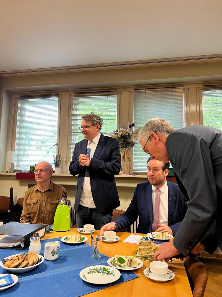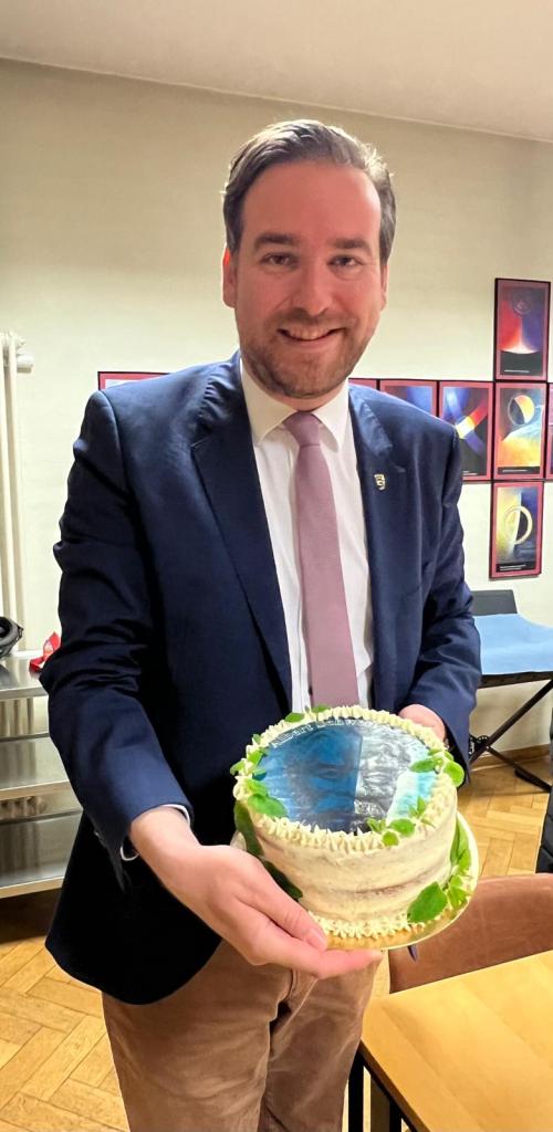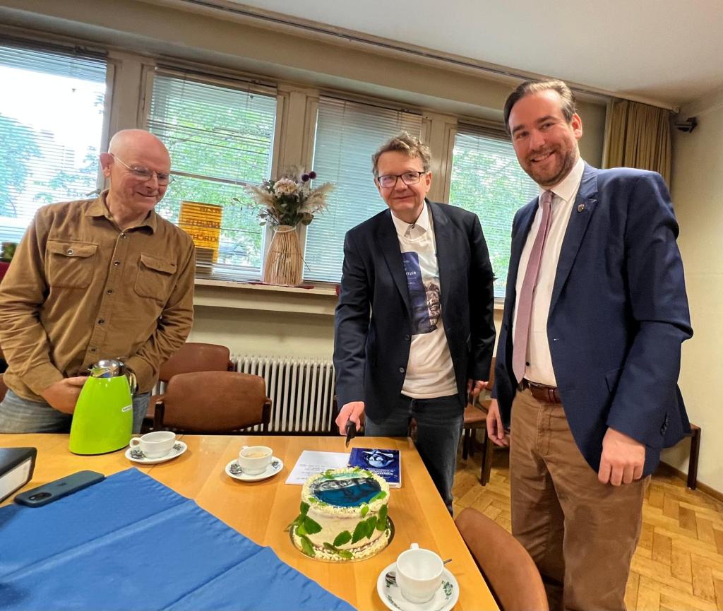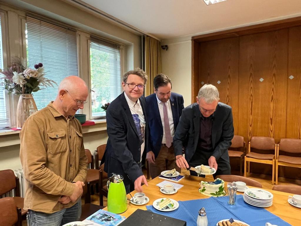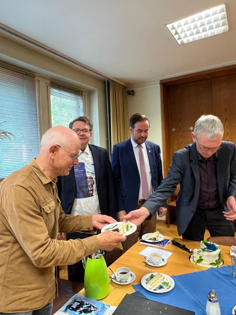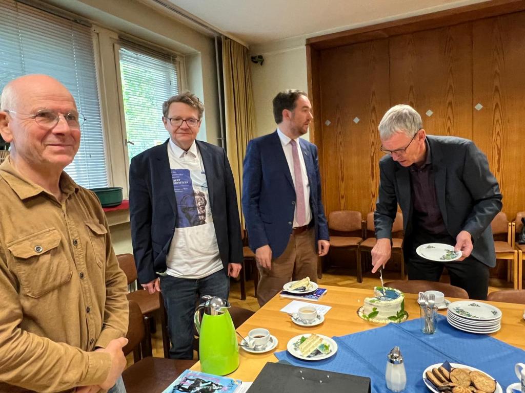 Als besondere Überraschung gab es dazu eine „Schweitzer-Torte“, geschmückt mit dem Cover zum Albert-Schweitzer-Buch, das im Oktober erscheinen wird und in Berlin und Schwetzingen präsentiert wird.