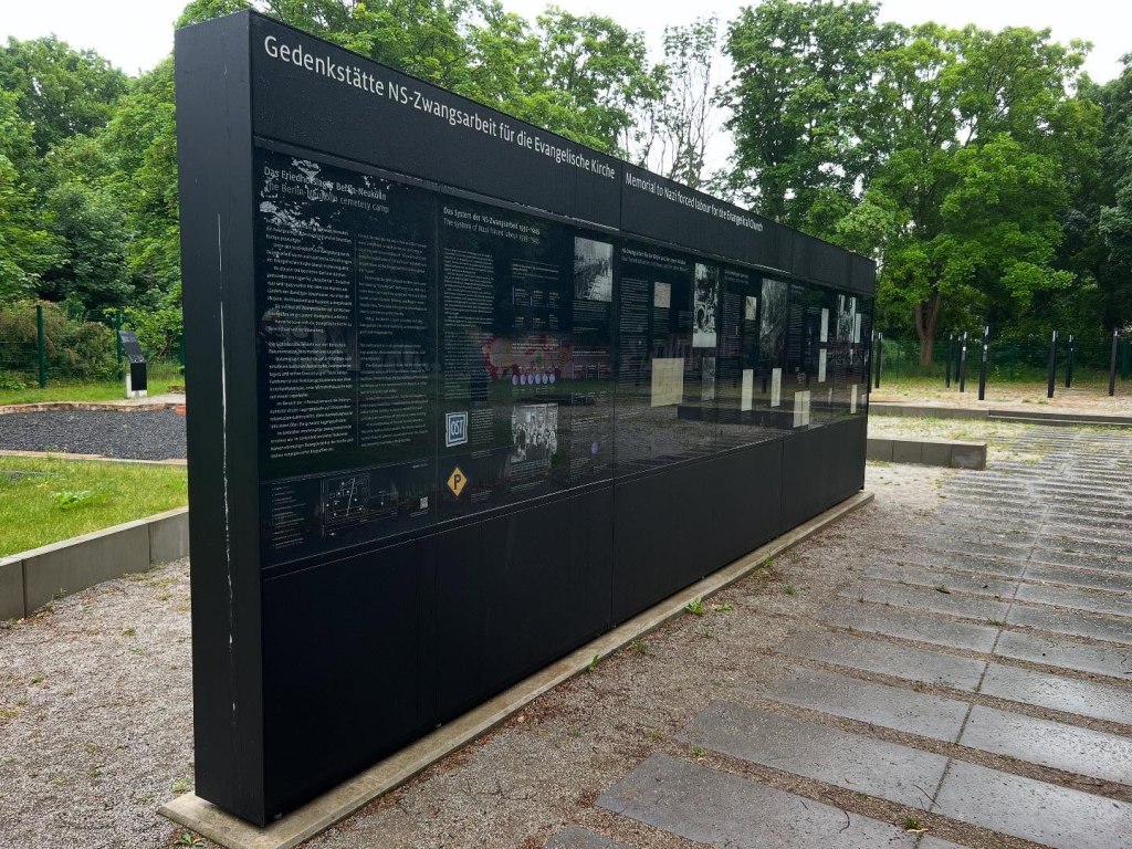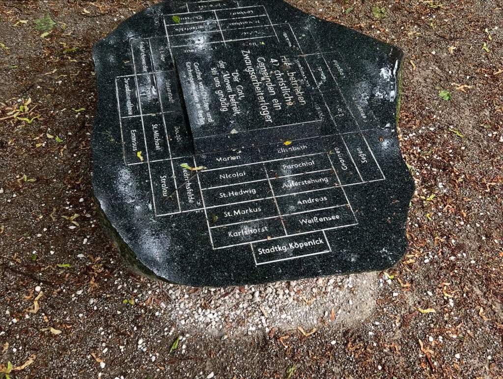 Entdeckungen am Wegesrand: Gedenkstätte NS-Zwangsarbeit für die Evangelische Kirche im Friedhofslager Berlin-Neukölln. Ein wichtiger Ort für die Erinnerung, dass auch Kirchen ein Zwangslager mit ca. 100 Männern betrieben, die von 1942-1945 die kirchlichen Friedhöfe in Berlin pflegten und hier in Baracken untergebracht wurden. Sehr liebevoll und detailliert von meiner geschätzten, grandiosen Kollegin im Ruhestand, Ulrike Trautwein, (ein)geführt. Jedes Jahr kommen die Gemeinden zusammen und legen Schuldsteine auf den Gedenkstein, der alle Kirchengemeinden benennt, die dieses Lager mit initiierten.