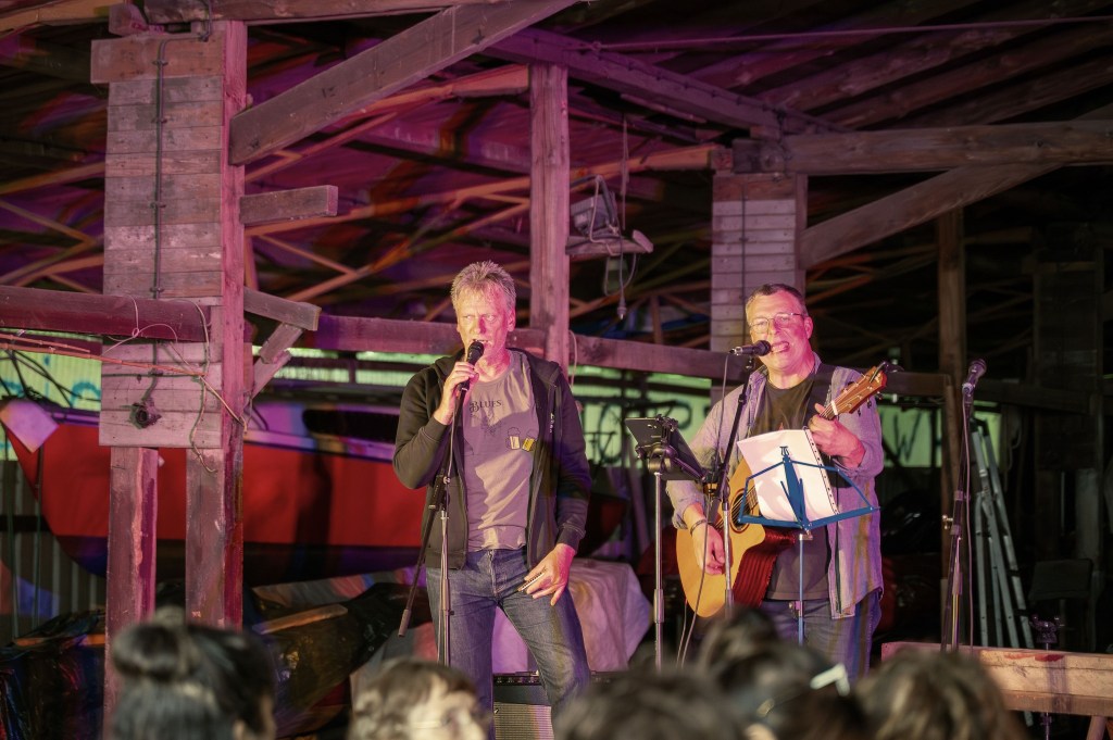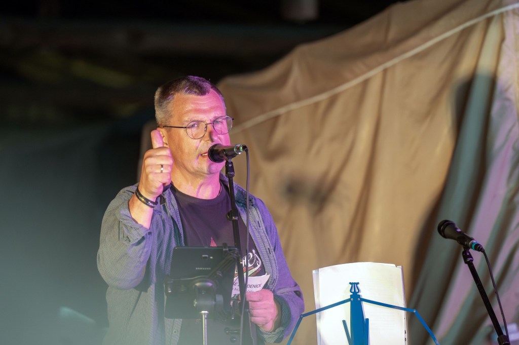 Eigentlich sollte es wieder ein Open Air für Bibel, Blues & Bier zum Start in die Sommerpause geben. Und fast so war es auch: Gestern Abend am und im Wassersportclub in Zehdenick. Zwar hat es seit Tagen hat es geregnet, die Wiesen stehen unter Wasser. Doch Zehdenicker kennen das und haben sich Gummistiefel angezogen. Es sind wieder mehr als hundert, nicht alle in oder mit Gummi-stiefeln. Aber ohne wetterfeste Kleidung ist niemand unterwegs. Sie sind auf einen langen Abend eingestellt, der einmal mehr auch musikalisch die Herzen höherschlagen lässt: Spooner und Carl von der Zehdenicker Deutschboden-Band „5 Teeth Less“ sind mit dabei. Und natürlich Sotti mit Bier und Mundharmonika und Andreas Domke mit seiner Gitarre und der Bibel und dem Blues, der immer die eine positive Note zwischen den Zeilen hat. Die ersten Töne von „Dirty old Town“ erklingen, alle Bänke sind besetzt. Der Regen hört auf.