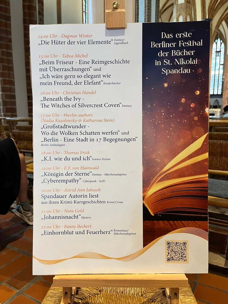 Gestern fand das erste Berliner Festival der Bücher in der St. Nikolaikirche statt, das Dominic Riemenschneider, unser Kulturmanager für Citykirchenarbeit konzipiert hat. Autorinnen und Autoren ganz unterschiedlicher Genres boten Kostproben ihrer Werke an und kamen mit den Leser:innen ins Gespräch. Von Kinderbuch, über Krimi, Sci-Fi, Fantasy und Berlin-Literatur war fast für jeden Geschmack etwas dabei. Danke an Domic Riemenschneider, die Spandauer Stadtbibliothek und das ganze Team und Gratulation zu dieser gelungenen Premiere!