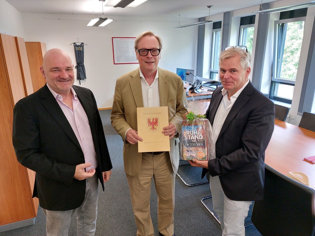 Ein Diplomat geht: Nach langem Dienst für das Land Brandenburg haben Europaminister Robert Crumbach und Staatssekretär Volker-Gerd Westphal den Leiter der Europaabteilung, Reiner Kneifel-Haverkamp in den wohlverdienten Ruhestand verabschiedet.