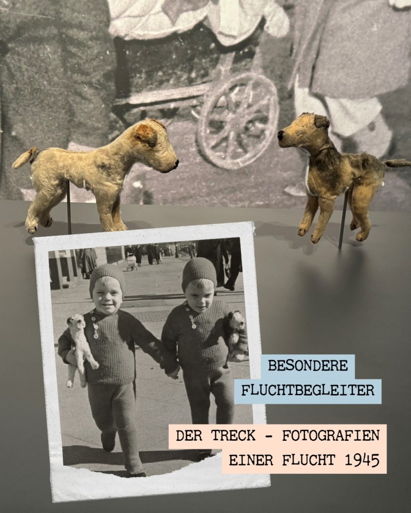 In der Sonderausstellung „Der Treck“ sind auch persönliche Objekte zu sehen – wie die beiden Stoffhunde der Zwillingssöhne des Fotografen Hans Tschira, Wolf und Peter-Christian. ![]()