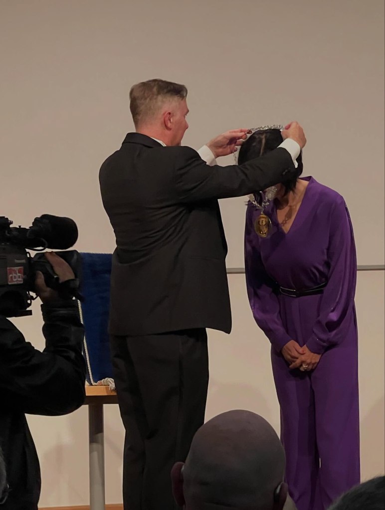 Eindrücke von der feierlichen Inaugurationsfeier für Oberbürgermeisterin Noosha Aubel in Potsdam. Hervorragende Einleitung von Dr. Hagen Wegewitz, Grußworte vom stellvertretenden Ministerpräsidenten Brandenburgs, Robert Crumbach, und Bürgermeister Burkhard Exner. Danach Überreichung der Amtskette und eine klare, schnörkellose Rede mit einer Werbung füreinander in Potsdam. Die Latte liegt jetzt hoch. Möge Sie sie selten reißen. Unsere herzlichsten Wünsche begleiten sie.