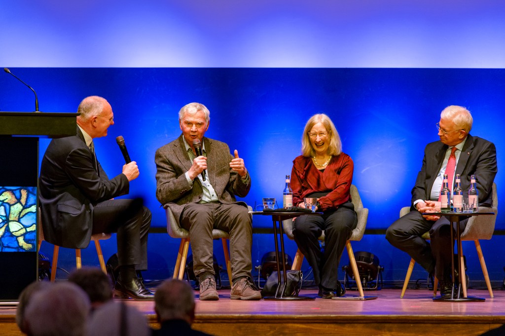 Im Podium diskutierten der ehemalige hessische Ministerpräsident und Vorsitzende der Ludwig-Erhard-Stiftung, Professor Dr. Roland Koch, Adalbert Kienle, von 1991 bis 2011 stellv. Generalsekretär des Deutschen Bauernverbandes und die australische Historikerin Professorin em. Dr. Lyndal Roper neben der historischen Bedeutung der Bauernkriege auch heutige Perspektiven sowie Parallelen zu den deutschen Bauernprotesten von 2023 bis 2024.