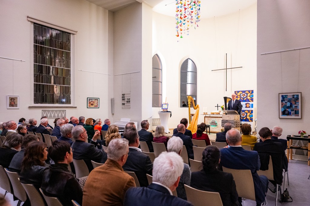 Im Anschluss an die Podiumsdiskussion ging der Präsident der Berlin-Brandenburgischen Akademie der Wissenschaften, Professor Dr. Christoph Markschies, in seiner Festrede „Zeitansage“ der Frage nach: „Wie steht es um das prophetische Amt von Theologie und Kirche heute?“