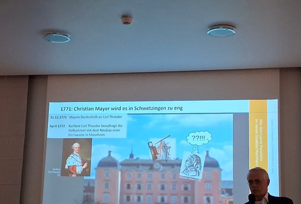 Am 25.03.2025 fand im Palais Hirsch in Schwetzingen ein besonderer Vortragsabend unter dem Titel „Zwischen Himmel und Erde – zur historischen Astronomie und Landvermessung in der Kurpfalz“ statt. Für die Veranstaltung konnten hochkarätige Referenten gewonnen werden. Durch den Abend führte Lars Maurer, Leiter des Schwetzinger Stadtmuseums.