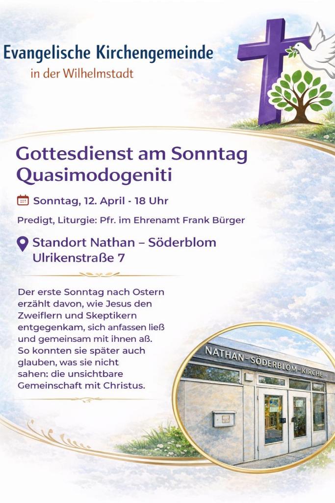 Ostermontag in der vollbesetzten Friedenskirche Potsdam zum InnstadtGottesdienst mit Pfarrerin Metzner, Kantor Pasewald, Kirchwart Zedler und Lektorin Ploner. Kein leichter Predigttext, der aber Sinne und Verstand anspricht und auf den Weg sendet. Die Jünger damals und uns heute. Die Predigt findet sich hier: https://www.ekbo.de/…/2026-04-06_Predigt_zu_Lk_24_36-49…